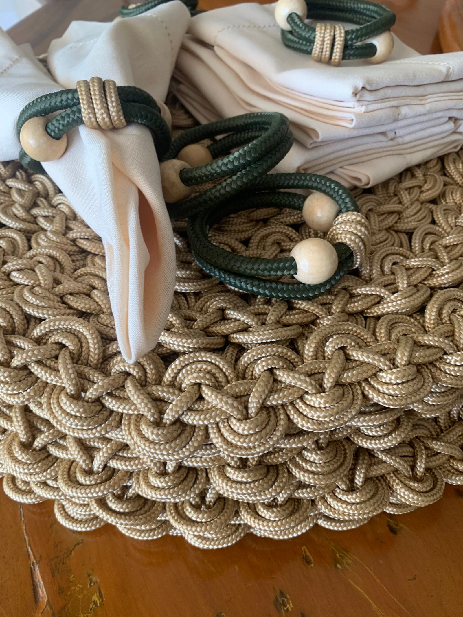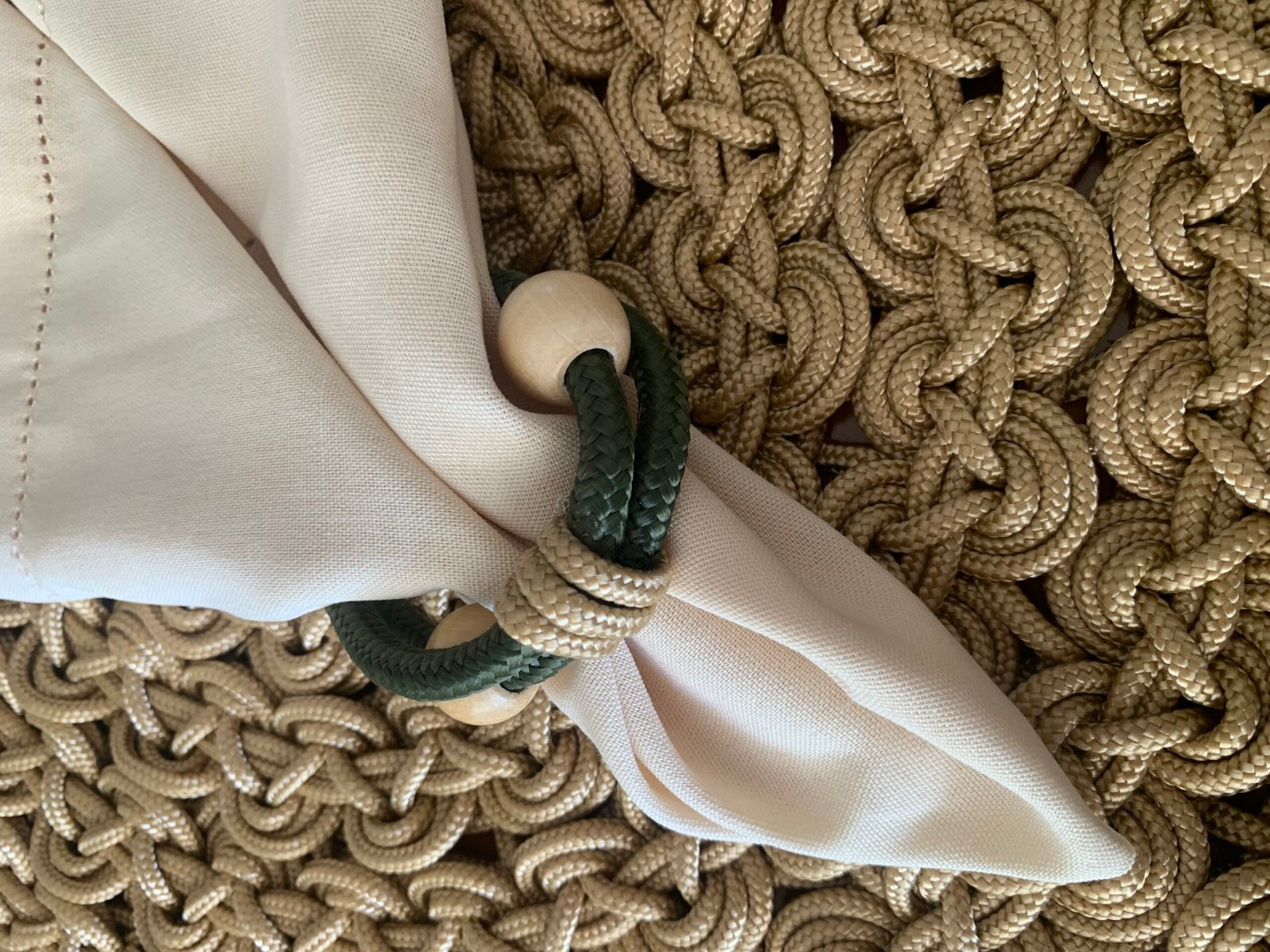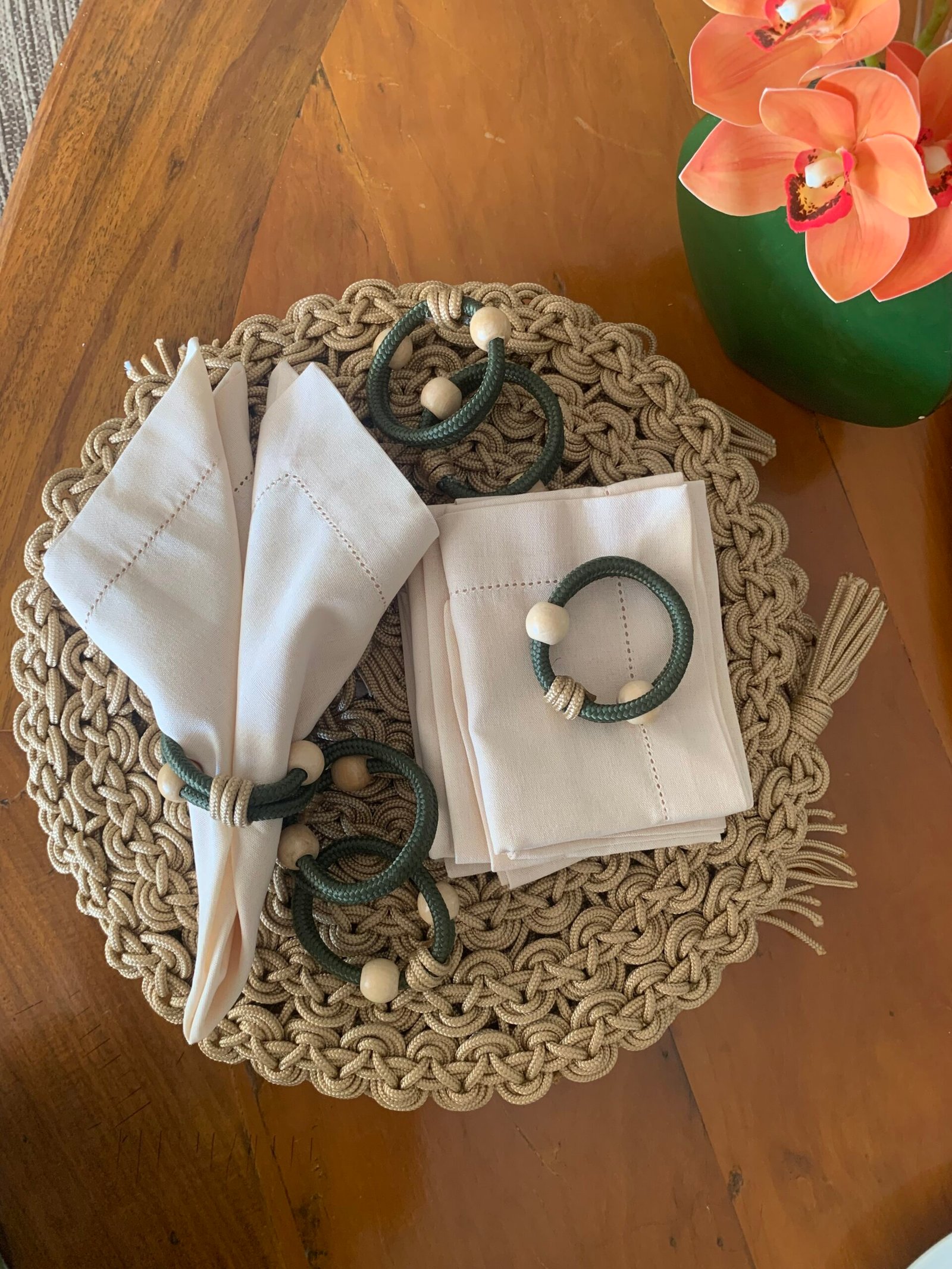 CONJUNTO COM 6 Lugares de mesa MACRAME – REDONDO – NÓ ONDAS cor RAMI