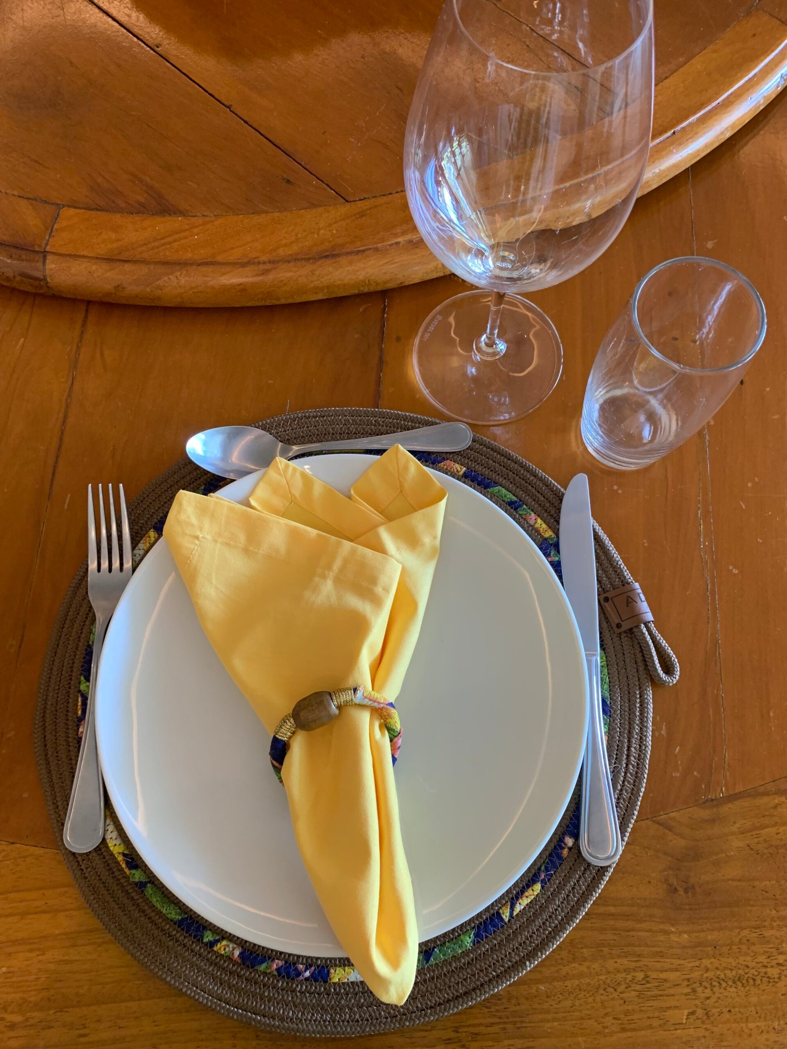 Lugar de mesa redondo com diâmetro de aproximadamente 37cm.