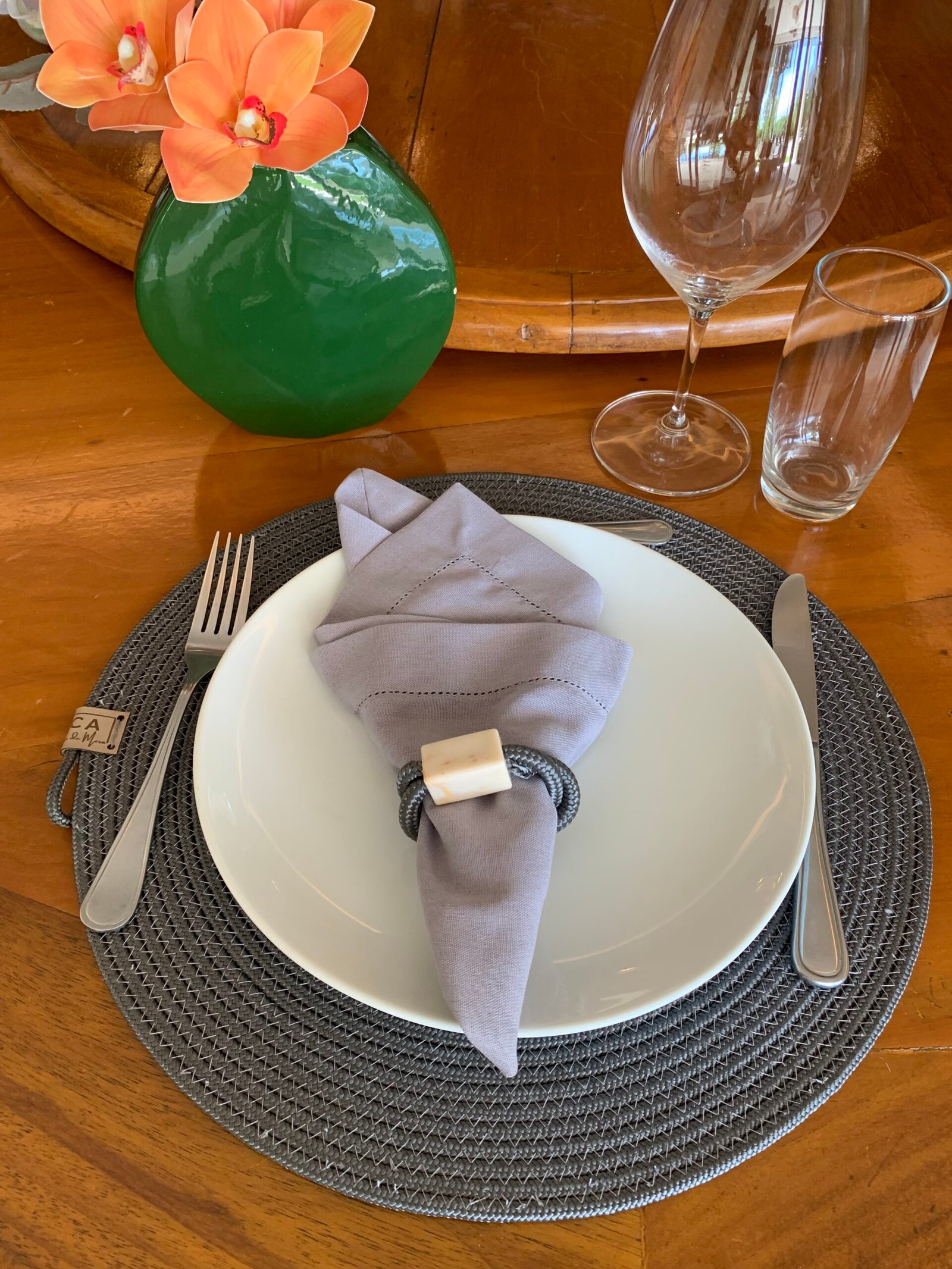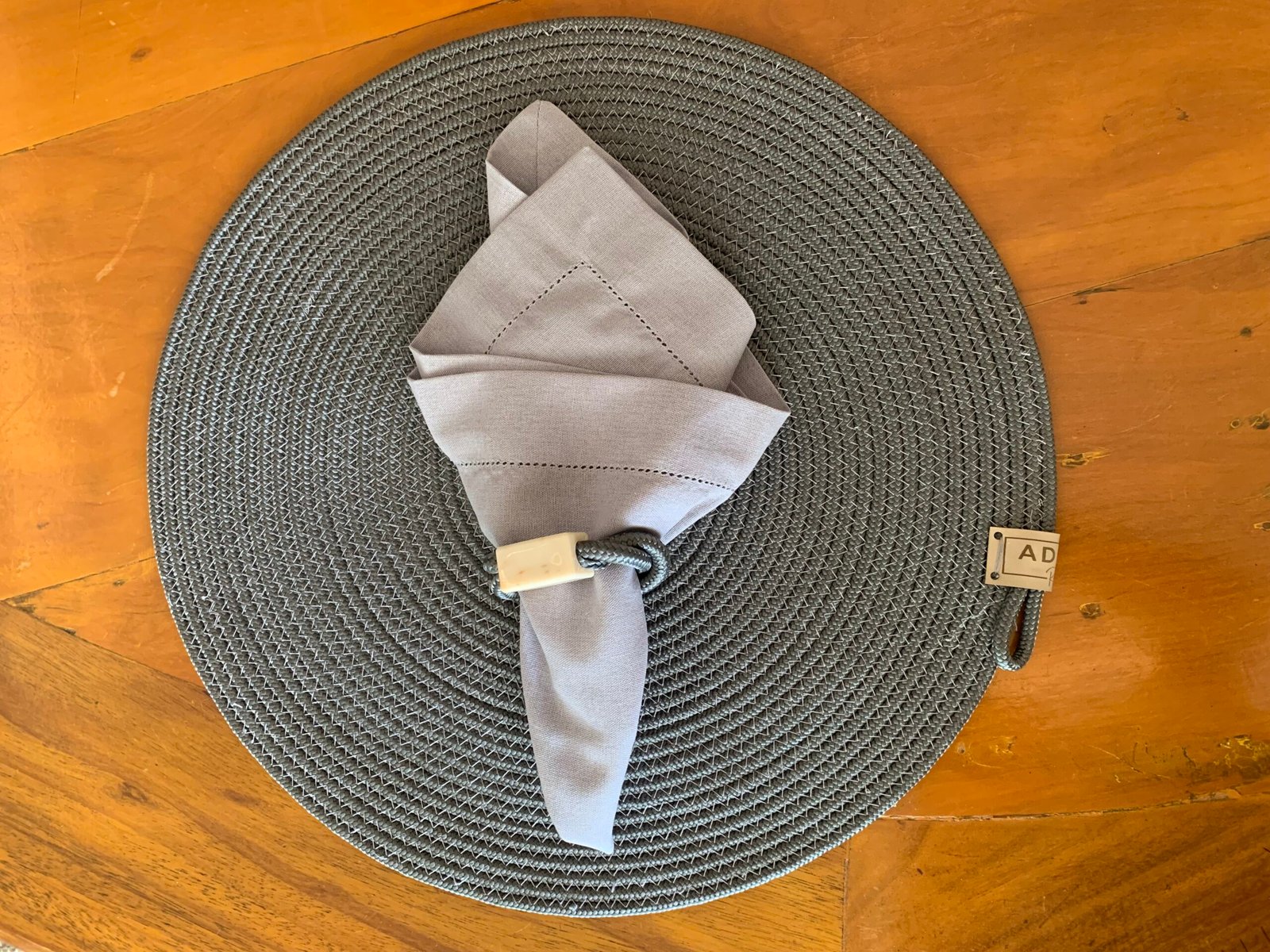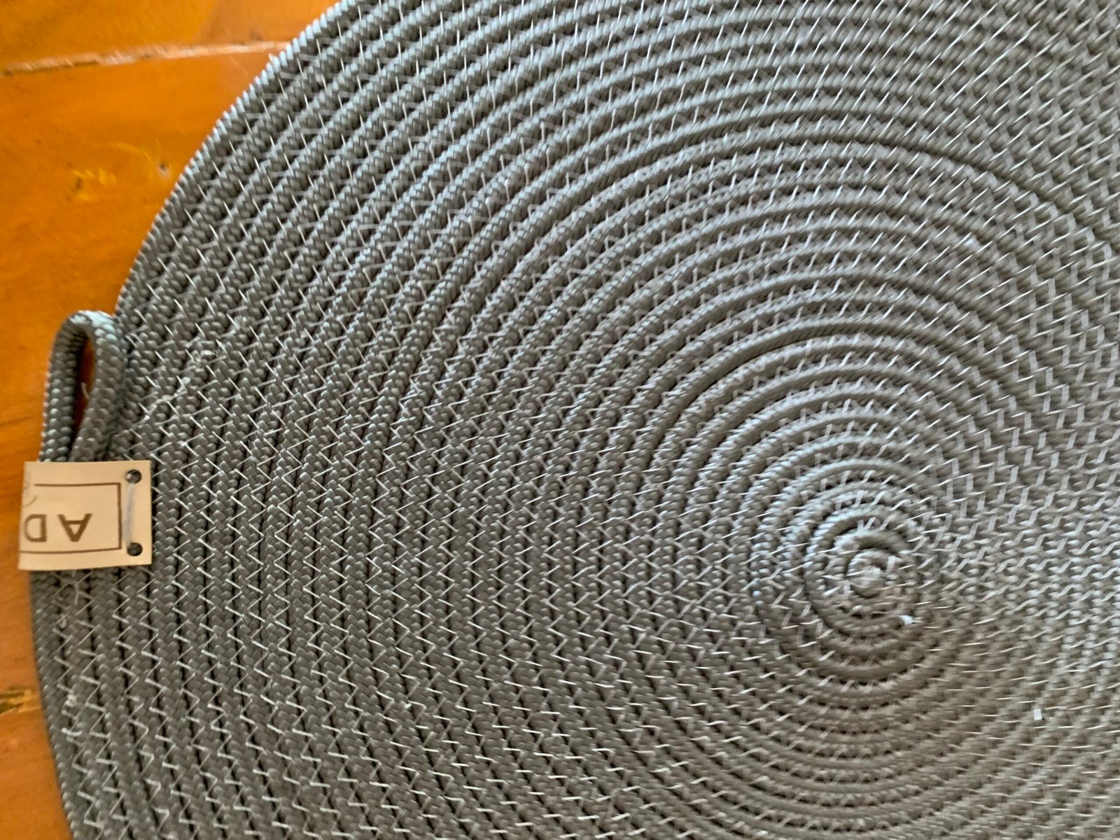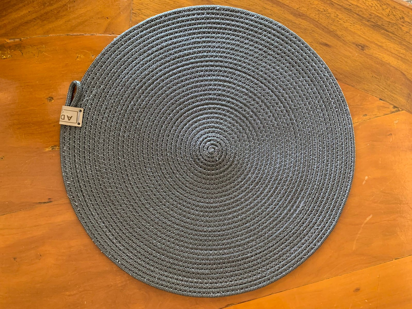 Jogo americano redondo feito com CORDA NÁUTICA costurada.